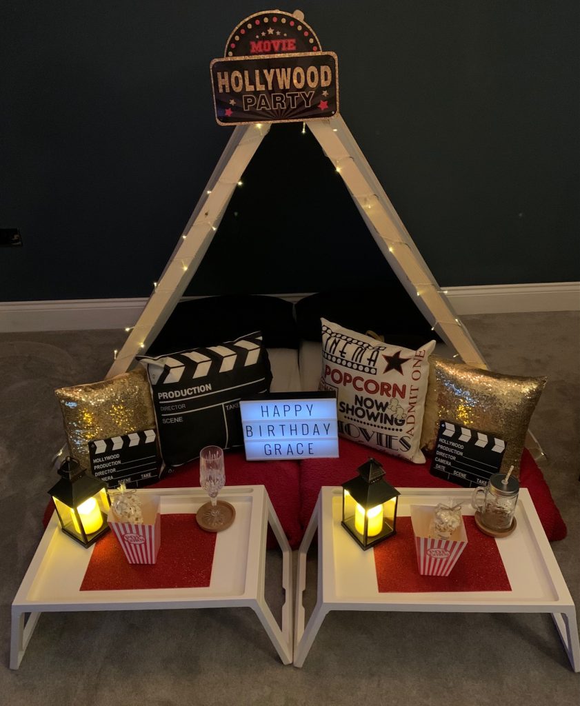Get the best seats in the house with our Movie Night theme. Our package includes a beautiful handcrafted CE tent and cover, mattress, fairy lights, all bedding including protectors, bunting, decorative cushions, battery powered lantern and a breakfast tray.